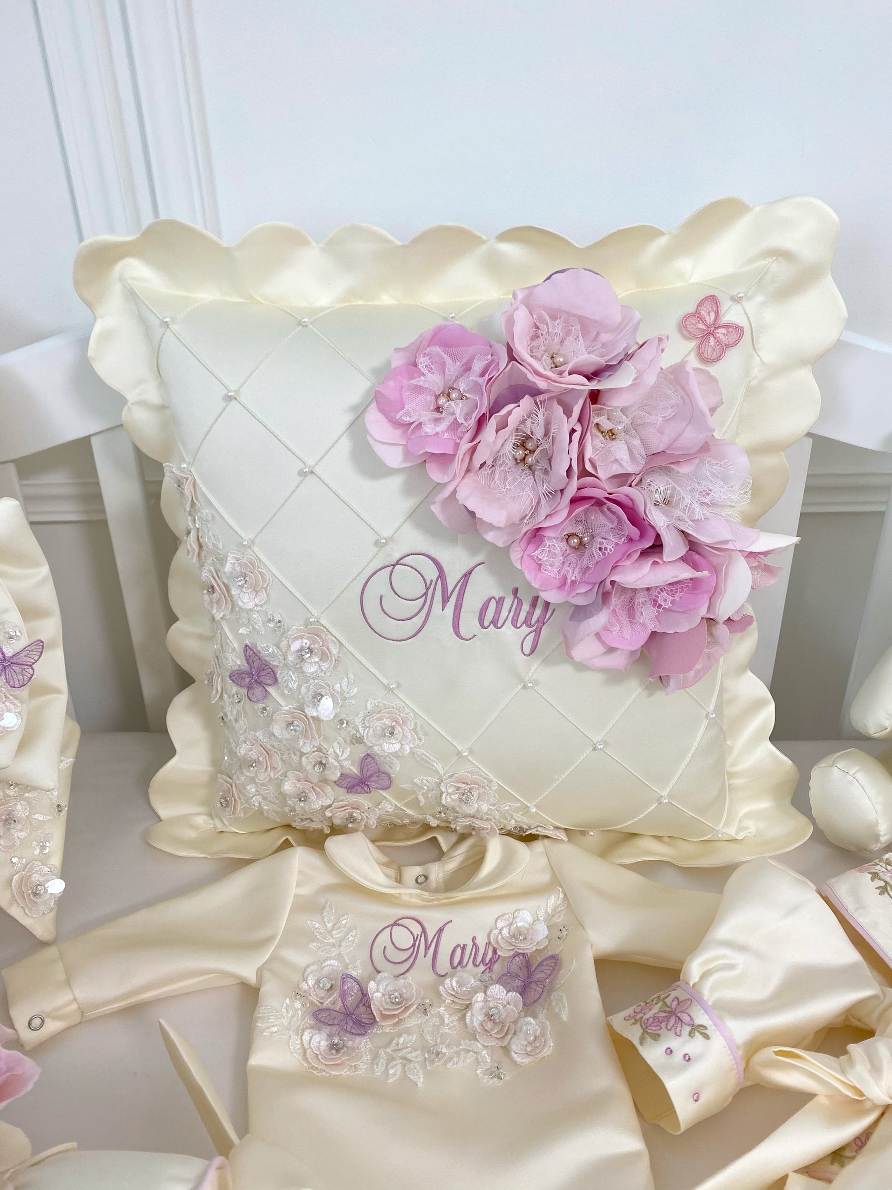 Due to the bespoke nature of our products, we may not have images available for every item. If you choose to purchase an item without a displayed image, rest assured it will be crafted with the same embroidery and design as shown above.