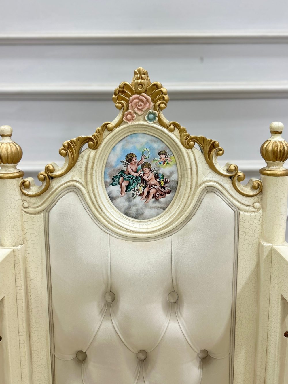 - Craftsmanship: Artisan hand-carved wood with gold-leaf detailing