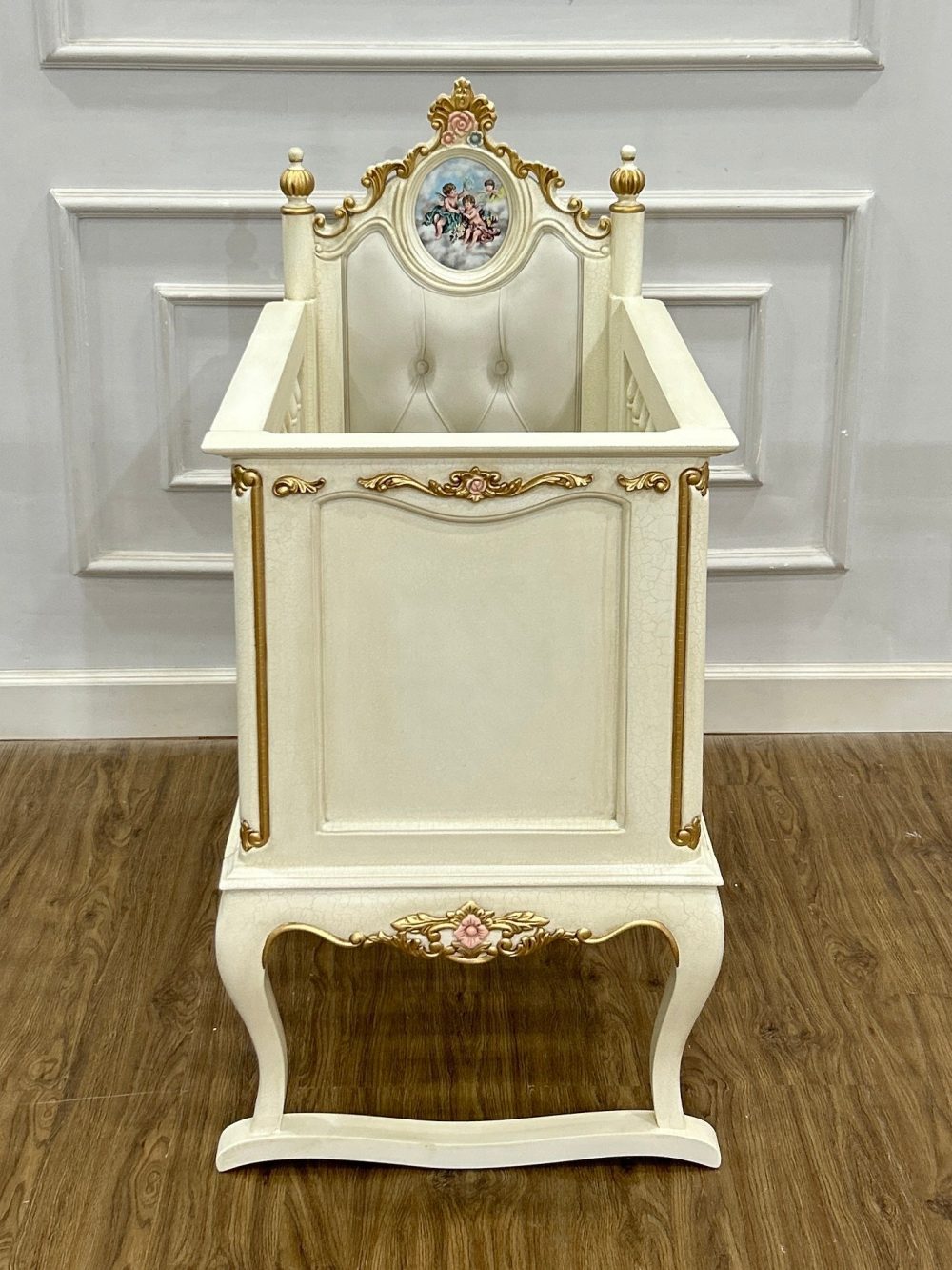 Wrap your newborn in the comfort of timeless elegance. The Oud Cradle by Ling Lux is a delicate blend of classical art and refined craftsmanship, perfect for creating a serene, storybook nursery. Adorned with intricate golden accents and hand-painted floral motifs, this heirloom piece is a celebration of romance and tradition.
