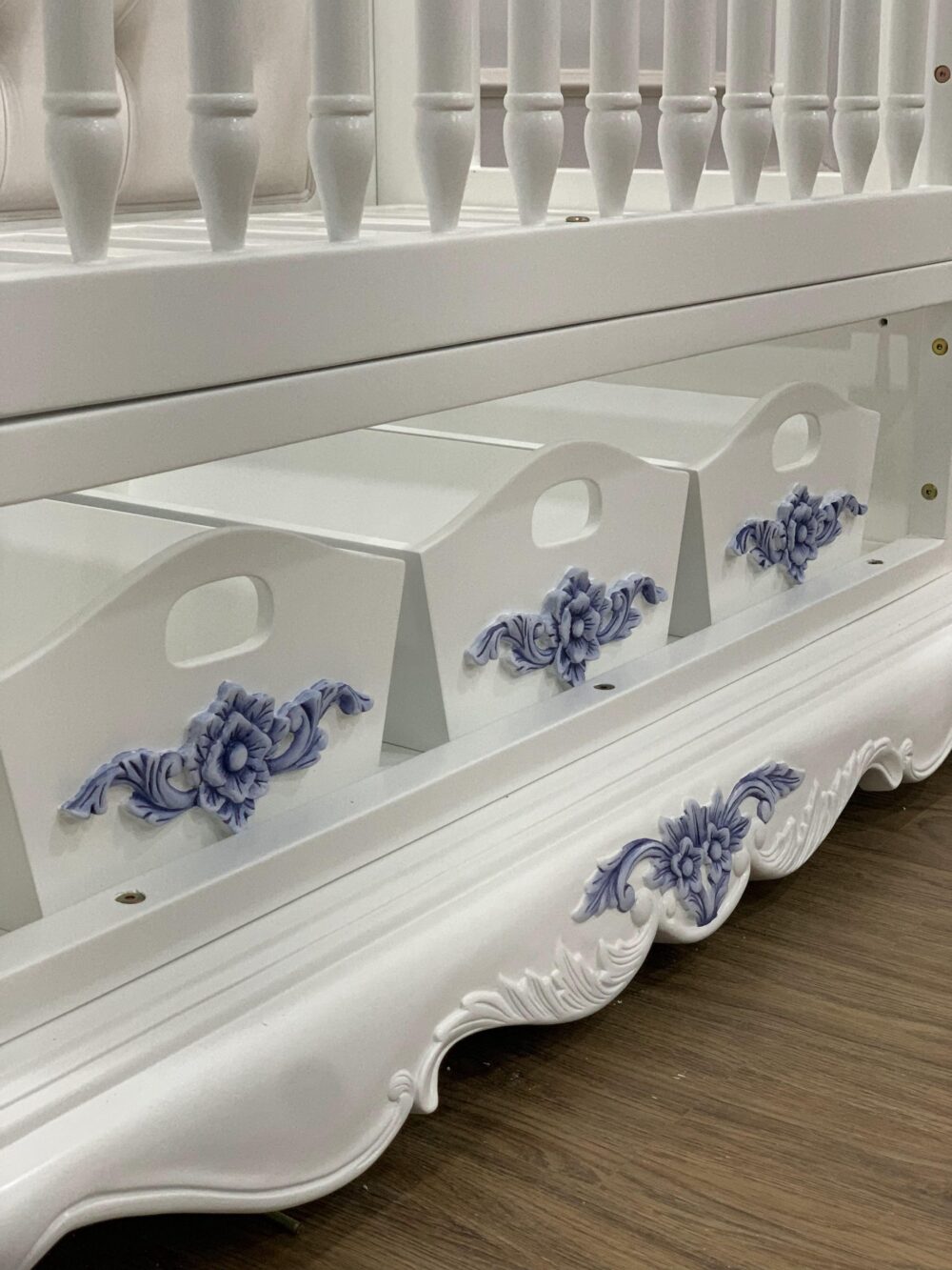 Choose to include 3 storage drawers which can be remove as our cots grow with your little one. Start with a higher base whilst your baby is newborn and then adjust it to a low level for when they’re sitting and standing up.